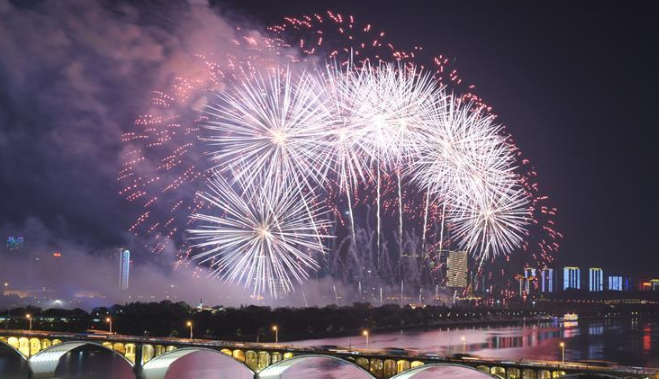 长沙:焰火照湘江