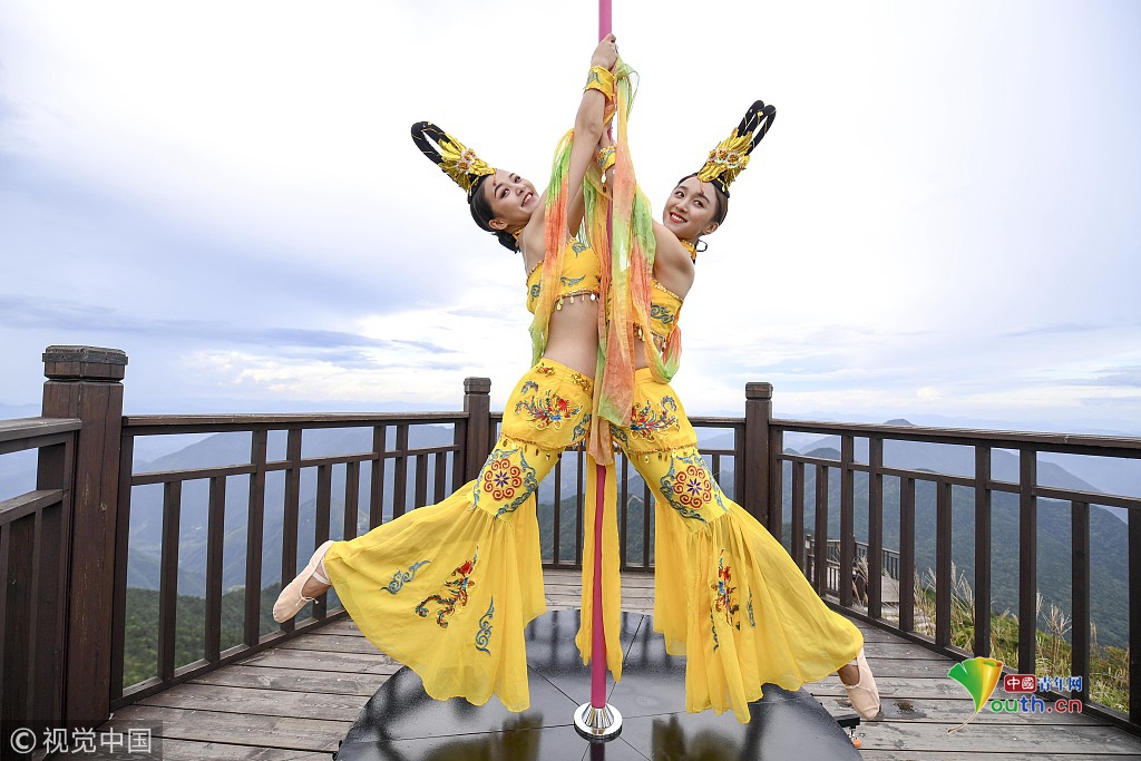 2018年9月20日,中秋节前夕,位于长三角第一高峰海拔1929米的浙江龙泉山顶,一场柔美的钢管舞表演吸引了众人围观。