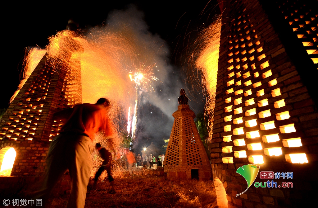 江西省进贤县西湖李村烧圣塔喜迎中秋节。烧圣塔是当地从古至今延续下来的中秋习俗。