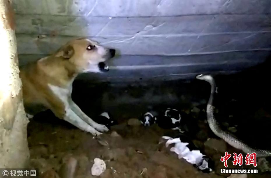 9月20日讯(具体拍摄时间不详),印度奥里萨邦,一只宠物狗勇敢地挽救了新生幼犬的生命,它击退了一条可怕的眼镜蛇。面对一条巨大的斑点眼镜蛇——世界上最毒的蛇之一——这位新妈妈勇敢保护仅出生两天的幼崽。但不幸的是,尽管狗狗尽了最大的努力,蛇还是在救援人员救出幼犬之前仍杀死了4只小狗。图片来源:视觉中国