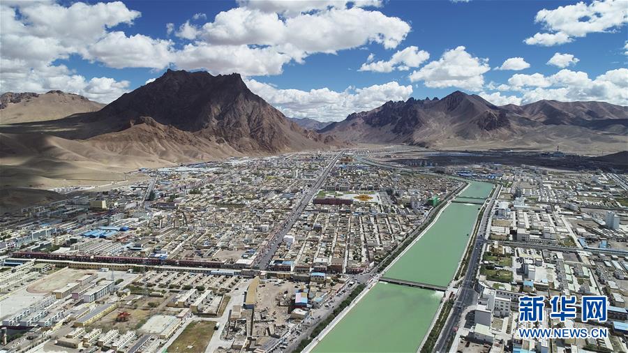 西藏阿里地区噶尔县狮泉河镇全景(9月10日无人机拍摄)。 新华社记者普布扎西摄