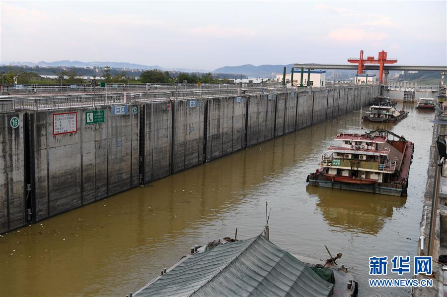 这是船舶准备从西江黄金水道广西梧州长洲水利枢纽船闸通过(9月21日摄)。 新华社记者 周华 摄
