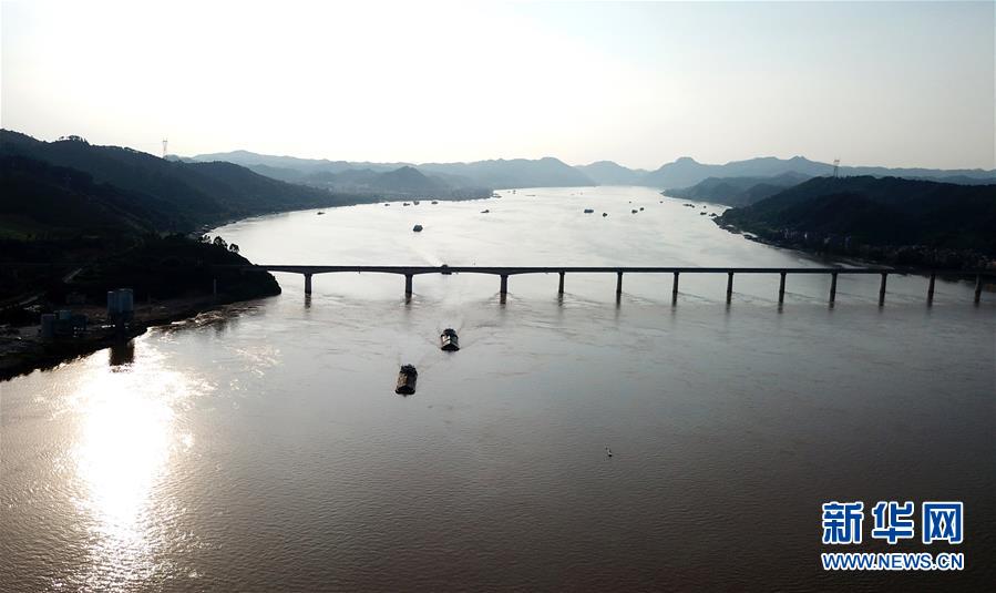 这是船舶从西江黄金水道浔江广西梧州段通过(9月21日摄,无人机航拍)。 新华社记者 周华 摄