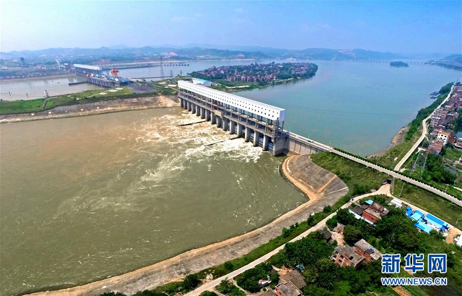 这是西江黄金水道上的广西梧州长洲水利枢纽(2017年1月2日摄)。 新华社记者 周华 摄