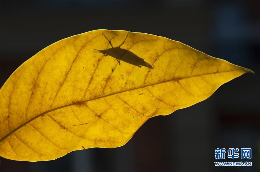 9月24日在上海市松江区农田里拍摄的蚱蜢。 新华社记者张建松摄