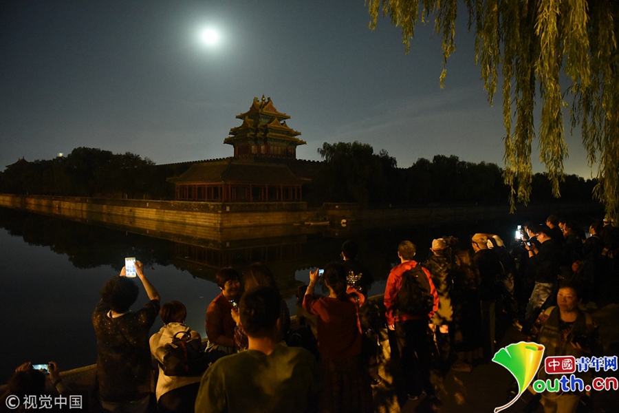 中秋夜,为拍月亮 他们把故宫角楼包围了