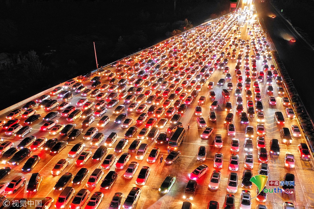 航拍郑州中秋返程高峰 堵车数公里宛如“巨龙”