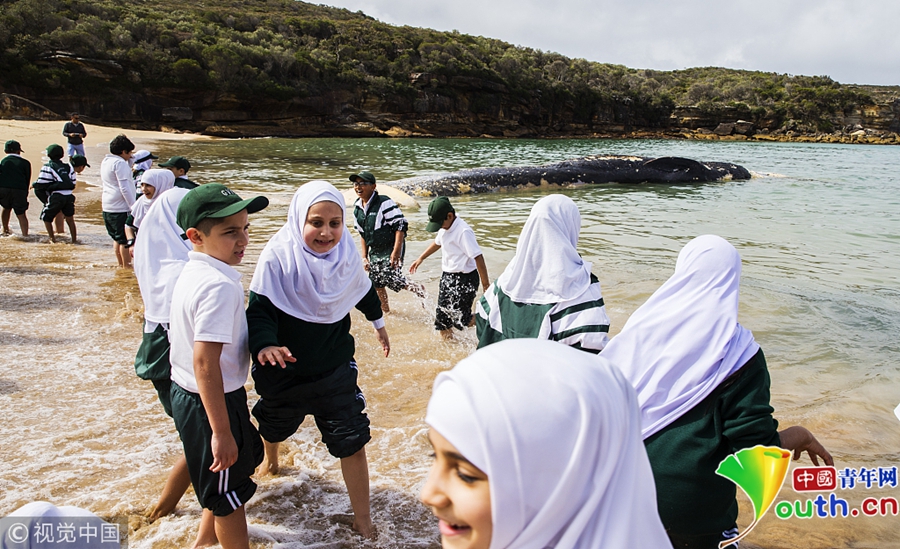 一头稀有的大须鲸的尸体被冲上当地海滩。