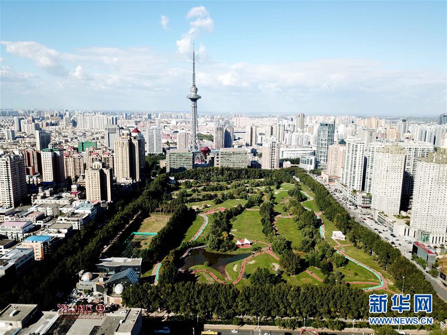 这是9月25日无人机拍摄的湘江公园全貌。 当日,哈尔滨市湘江公园正式开园迎客。这个集休闲、健身、娱乐、观赏于一体的多功能都市公园由高尔夫球场改造而成,免费对市民和游客开放。 新华社记者 王建威 摄