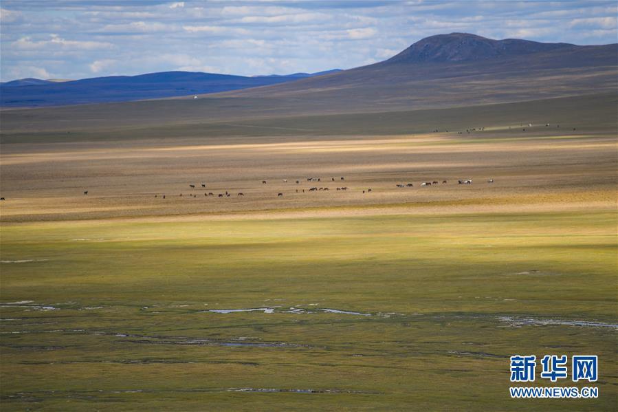 乌拉盖管理区位于内蒙古自治区锡林郭勒盟东北部,金秋时节,这里的草原换上了金黄色的盛装,湛蓝的天幕下,牛羊如珍珠散落,呈现出独特的美丽景观。