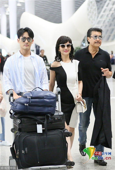 2018年9月25日晚,深圳,刚参加完央视秋晚的赵雅芝携老公黄锦燊及儿子黄恺杰抵达深圳宝安机场,超高颜值的一家人所致之处频频引起侧目,其子黄恺杰自推行李车,俊朗的外形引起粉丝一路跟拍,相当拉风!