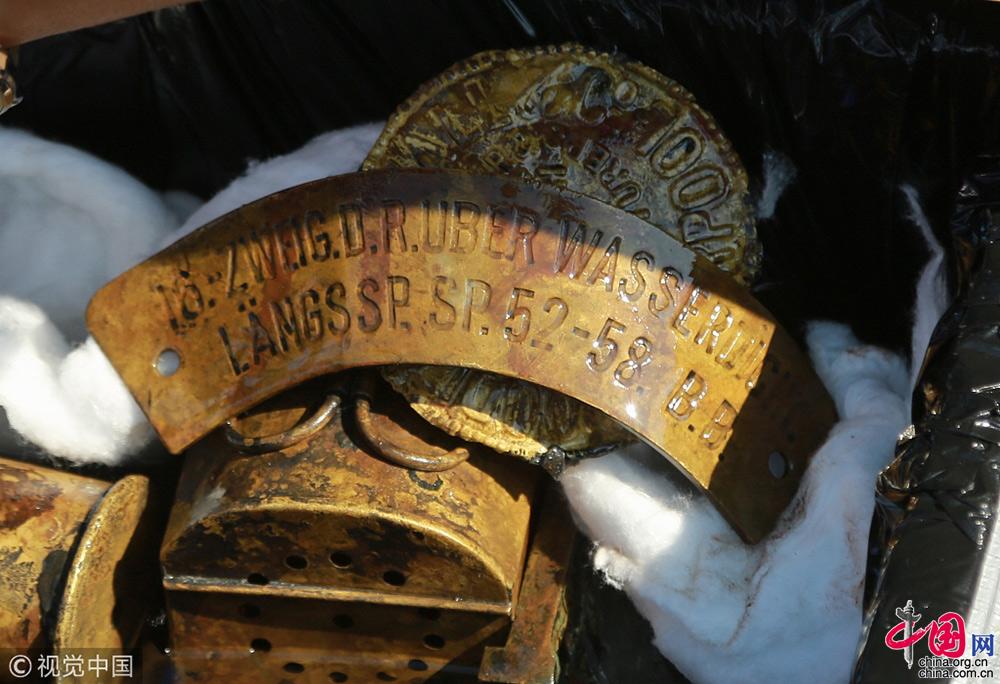 2018年9月25日,辽宁大连,在庄河黑岛海域甲午战争“经远舰”遗址出水的各类遗物标本。视觉中国