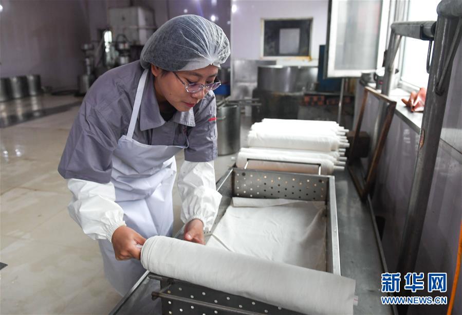 卜睿整理做豆腐用的白布(9月21日摄)。她作为家中第一个大学生,不顾家人反对,毅然回到乡村,只为“做一块健康的豆腐”;她不怕吃苦、敢想敢做,打响“卜家”品牌,把“小生意”做成“大买卖”;面对社会责任,她发起成立“长春市女大学生返乡创业联盟”,并主动带邻里乡亲脱贫致富。她就是吉林省昌睿食品有限公司总经理卜睿。她说,创业就是把喜欢的东西做成产业。新华社记者 许畅 摄