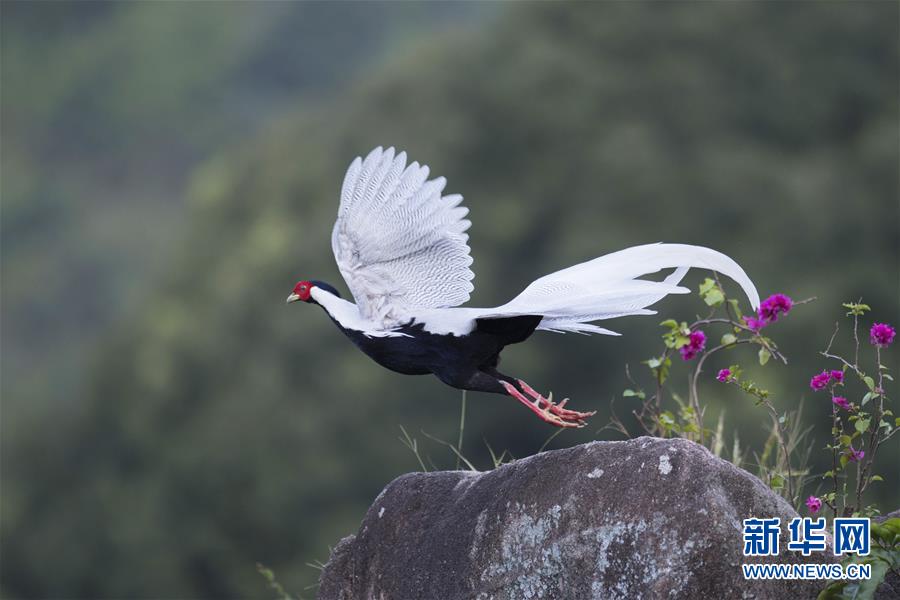 9月27日,一只白鹇在南靖县鹅仙洞自然保护区飞翔。