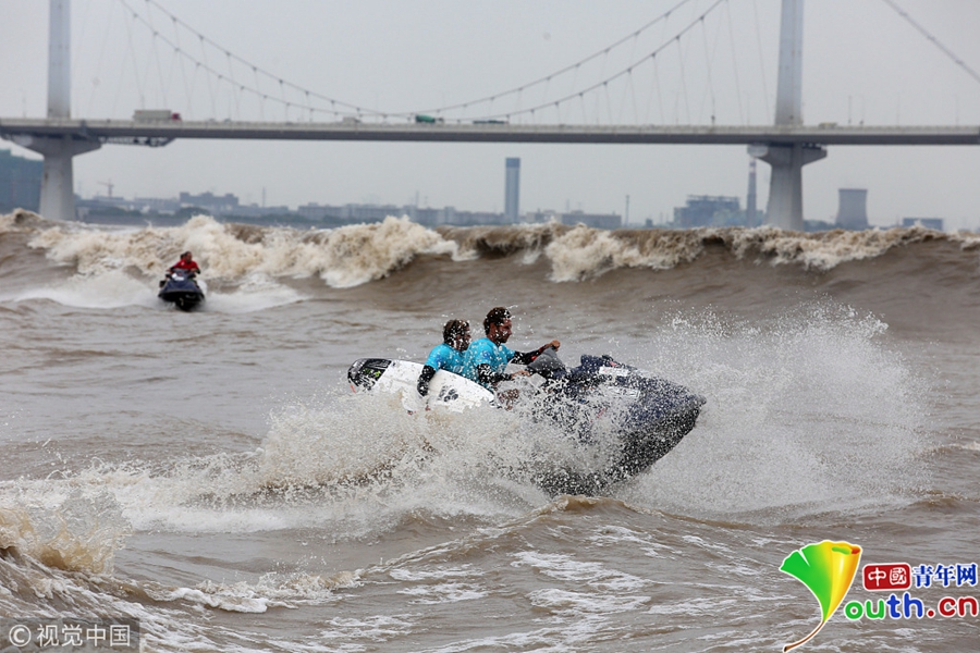 连续办了十年的钱塘江冲浪赛,主办方今年首次尽邀五大洲选手参赛,来自中国、西班牙、澳大利亚、美国、南非、巴西、法国和印尼等11个国家和地区百余名选手参与竞争。