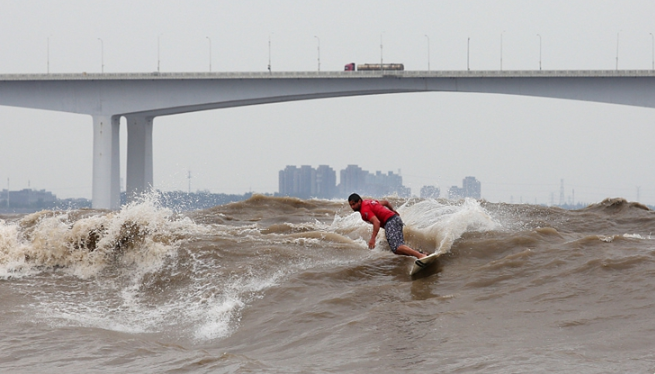 杭州:高手聚集钱塘江 上演冲浪对决 ...
