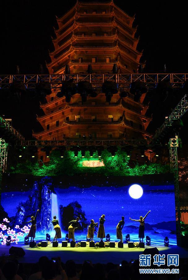 9月26日,浙江音乐学院舞蹈团成员在钱塘江畔六和塔下表演舞蹈。新华社记者 黄宗治 摄