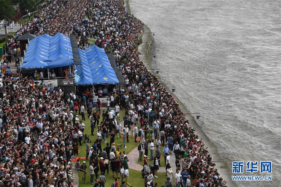 9月27日,人们在浙江海宁市盐官镇观看钱塘江大潮。当日是农历八月十八,号称“天下第一潮”的钱塘江大潮汹涌而来,众多钱塘江沿岸居民和游客争睹其壮观景象。新华社记者 黄宗治 摄