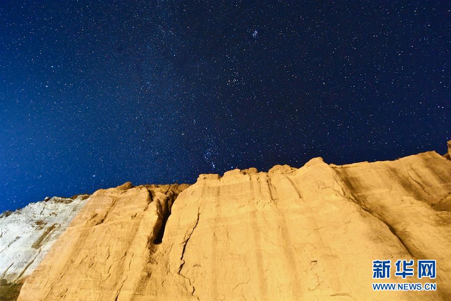 西藏阿里境内拍摄的土林和星空(9月11日摄)。西藏阿里地区平均海拔4000米以上。这里拥有得天独厚的自然条件,大气通透度、晴空率、夜空质量等指标优异,远离光污染,是星空摄影爱好者的理想选择地。新华社记者 普布扎西 摄
