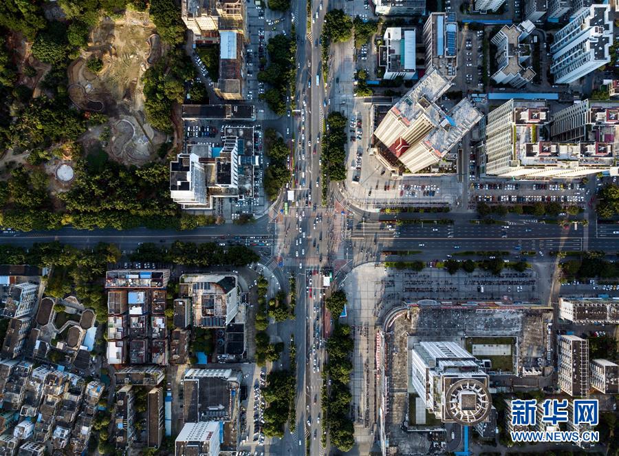 这是广西北海市北海大道和北京路交汇处街景(9月27日无人机拍摄)。