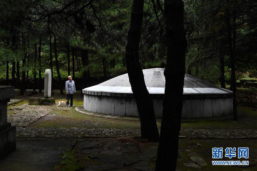 赵乃堂在黄崖洞烈士陵园烈士墓前肃立瞻仰(9月20日摄)。 新华社记者 詹彦 摄