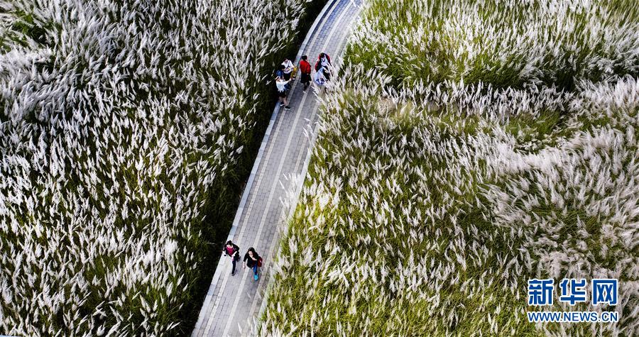 近日,陕西省汉中市沿汉江两岸的湿地公园数百亩芦花荡漾,令游人流连忘返。 新华社记者陶明 摄