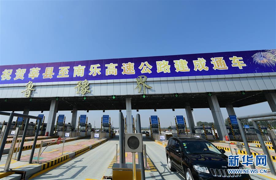 9月28日,车辆通过山东省莘县的莘(县)南(乐)高速鲁豫界收费站。新华社记者 冯大鹏 摄