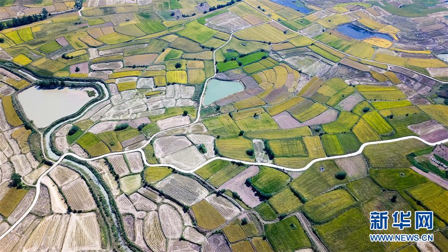 这是安徽凤阳小岗村稻田景象(9月27日无人机拍摄)。 新华社记者 张端摄