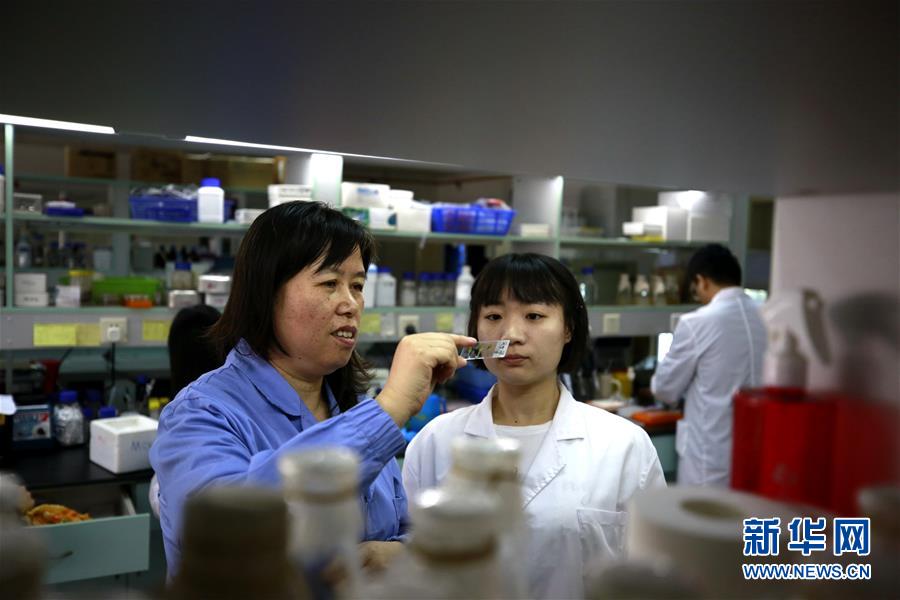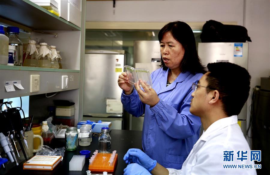 中科院植物生理生态研究所郑慧琼研究员(左)和学生在实验室研究拟南芥(9月14日摄)。新华社记者张建松摄