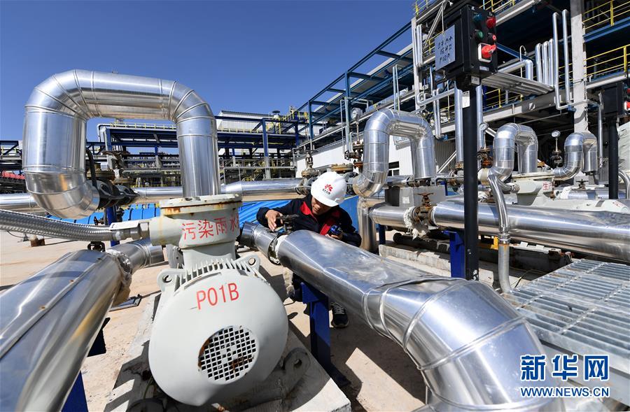 延安煤油气资源综合利用项目甲醇制烯烃中心的工作人员在进行设备巡检(9月28日摄)。新华社记者刘潇摄