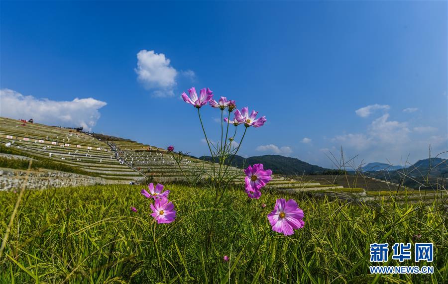 9月29日拍摄的秋日中的建德市大洋镇高垣村梯田风景。当日,2000多名太极拳爱好者在浙江省建德市大洋镇高垣村的千亩梯田上参加太极拳表演,吸引很多当地人和游客前来观赏,助力当地金秋时节乡村旅游。近两年来,大洋镇充分利用土地整治后形成的千亩梯田打造农业观光综合体,发展综合型农业观光旅游,为乡村振兴注入新活力。新华社记者徐昱摄