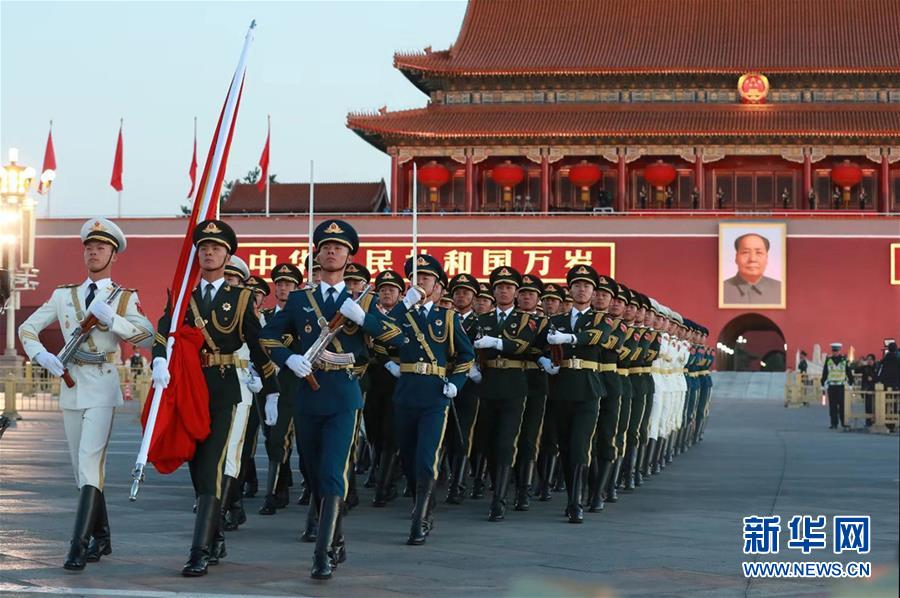 10月1日清晨,隆重的升国旗仪式在北京天安门广场举行,庆祝中华人民共和国成立69周年。新华社记者琚振华摄