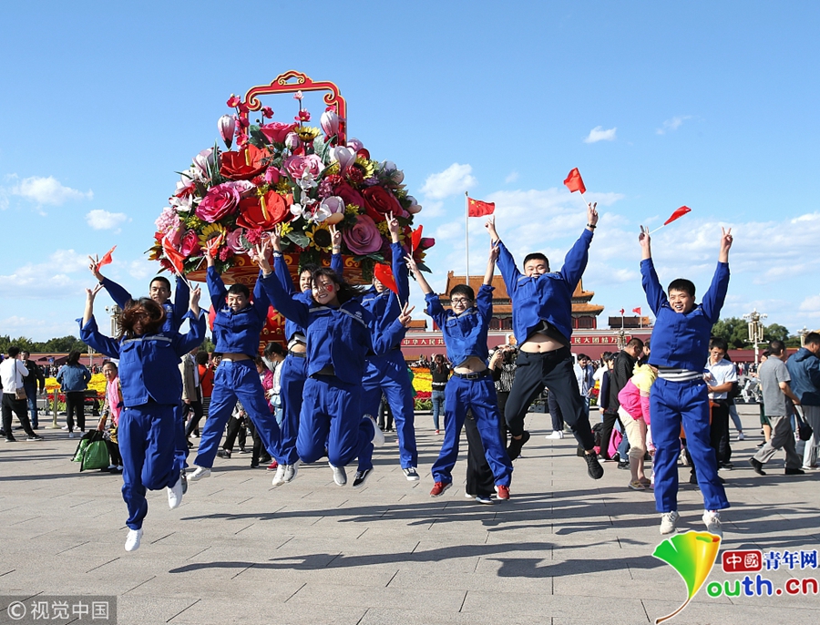 2018年9月29日,北京天安门广场装扮一新,花团锦簇,洋溢出一派节日的喜庆景象,迎接国庆佳节到来。