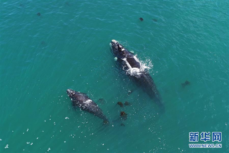 9月30日,在南非赫曼纽斯小镇附近海面上,南露脊鲸在海岸边畅游。9月29日,位于开普敦以东约115公里的赫曼纽斯小镇迎来2018年的鲸鱼节,来自世界各地的游客可乘船出海观鲸,也可在岸边等待鲸鱼的到来。新华社记者陈诚摄