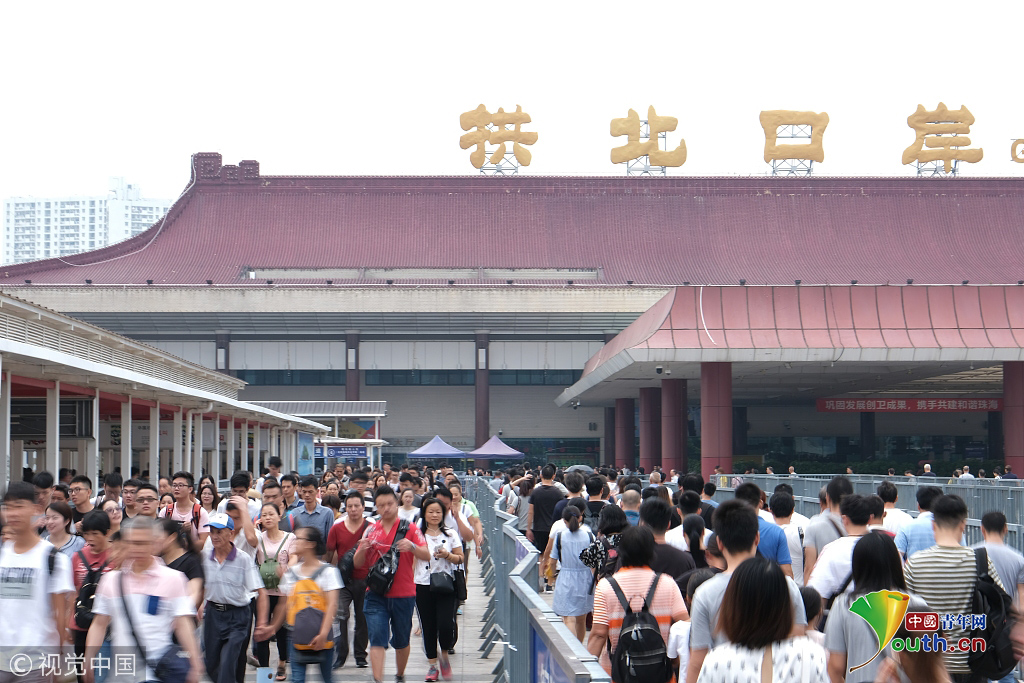 2018年10月1日国庆节,珠海拱北口岸迎来第一波过关的民众,拱北口岸是中国人流量最大的陆地通关口岸。图片作者:潘力