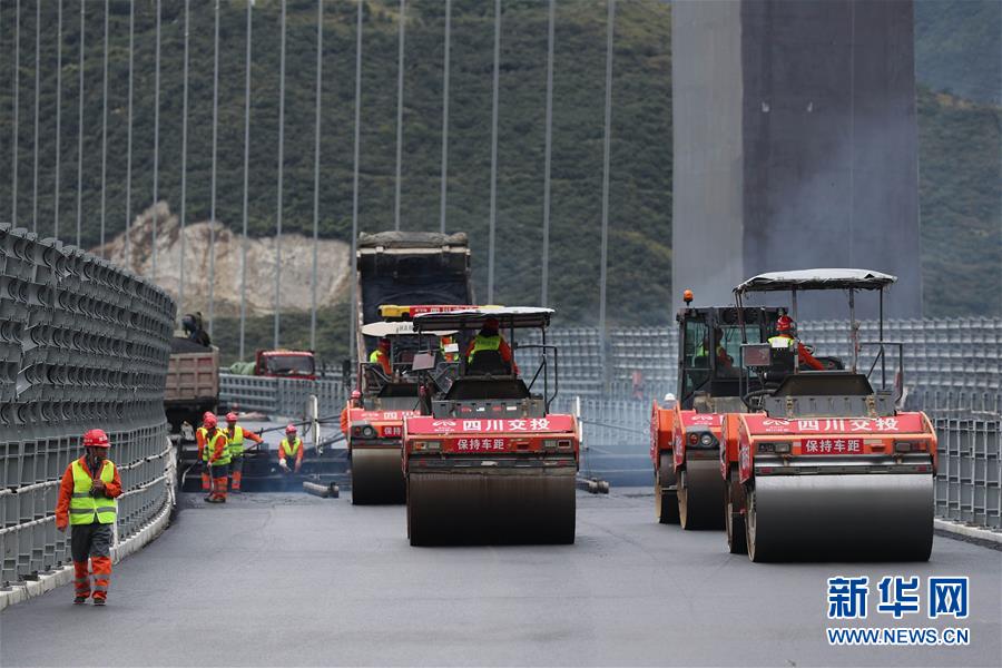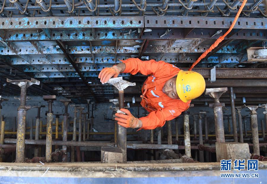 10月1日,建筑工人在雅康高速泸定大渡河兴康特大桥施工现场作业。当日是国庆节,许多劳动者坚守在工作一线,在岗位上度过节日。新华社记者江宏景摄
