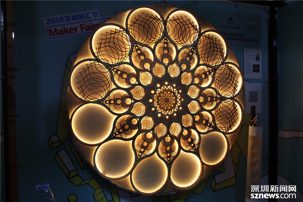 在主会场一楼展厅内,一款由激光切割制作的灯具十分精美