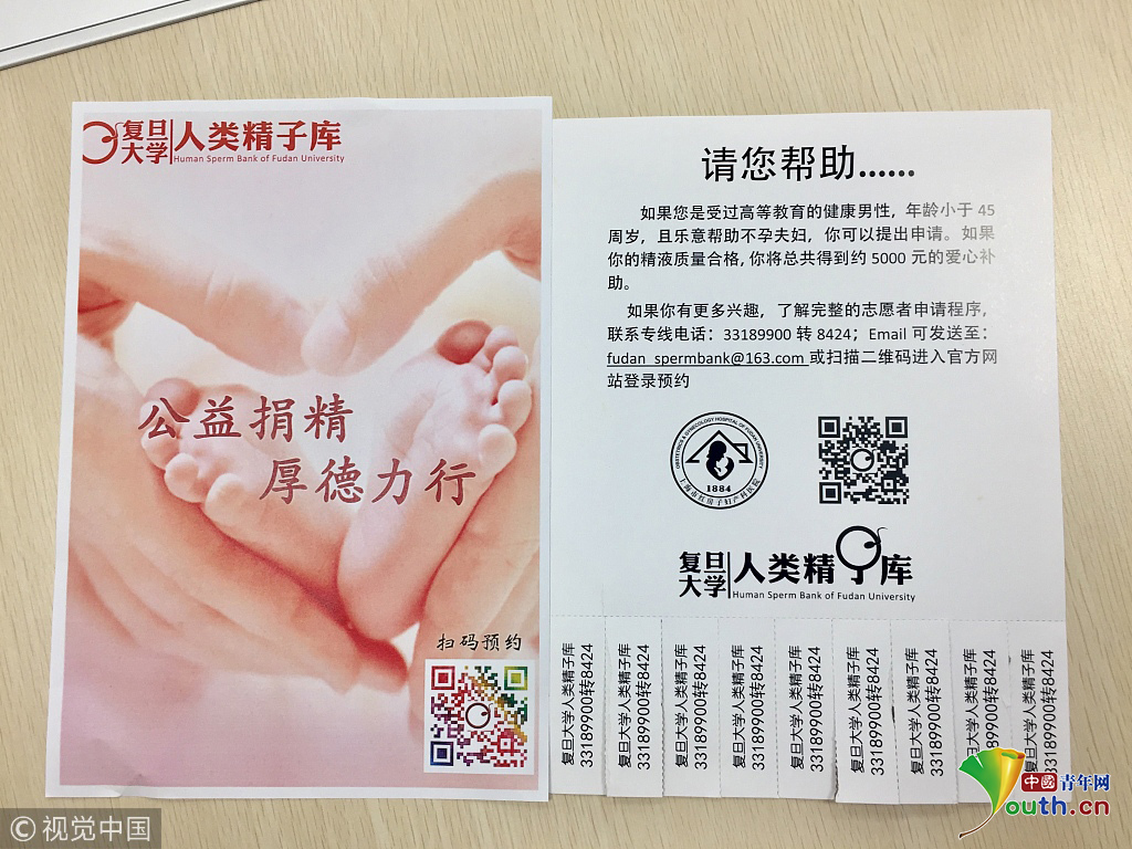 2018年9月20日,上海,实拍复旦大学人类精子库。复旦大学人类精子库宣传单。图片作者:陈斯斯