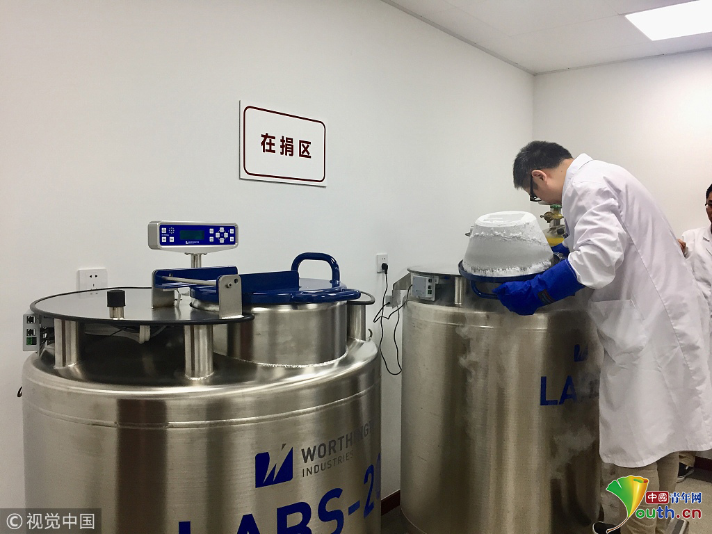 2018年9月20日,上海,实拍复旦大学人类精子库。在复旦大学人类精子库,志愿者捐献出的精液被保存在液氮中。图片作者:陈斯斯