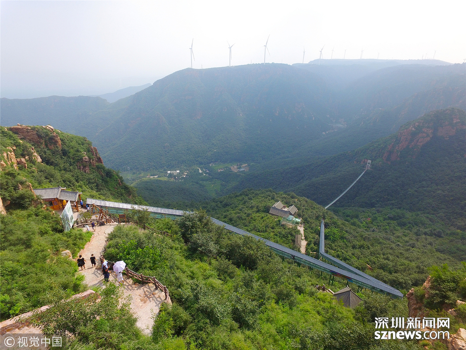 深圳新闻网讯 2018年8月11日,郑州,双排高空玻璃滑道亮相伏羲山三泉湖景区,整条滑道从高空俯视,呈龙形蜷曲姿态俯卧于玫瑰岭下,与中原第一凤凰天桥首尾相接。