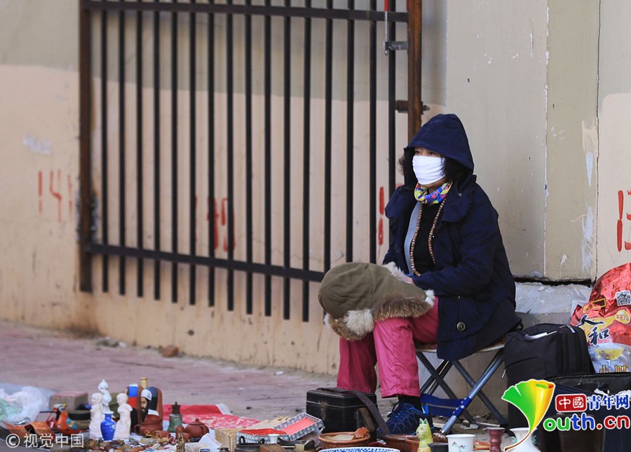 2018年10月7日,黑龙江省哈尔滨市,清晨,哈市温度仅有5℃,在道外靖宇街,出地摊的人和逛摊的市民,纷纷穿上羽绒服与棉服御寒。