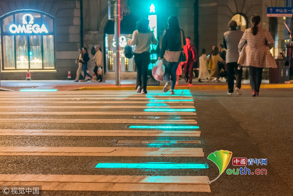 上海发光斑马线投入使用 为中国首套新型行人过街提示系统