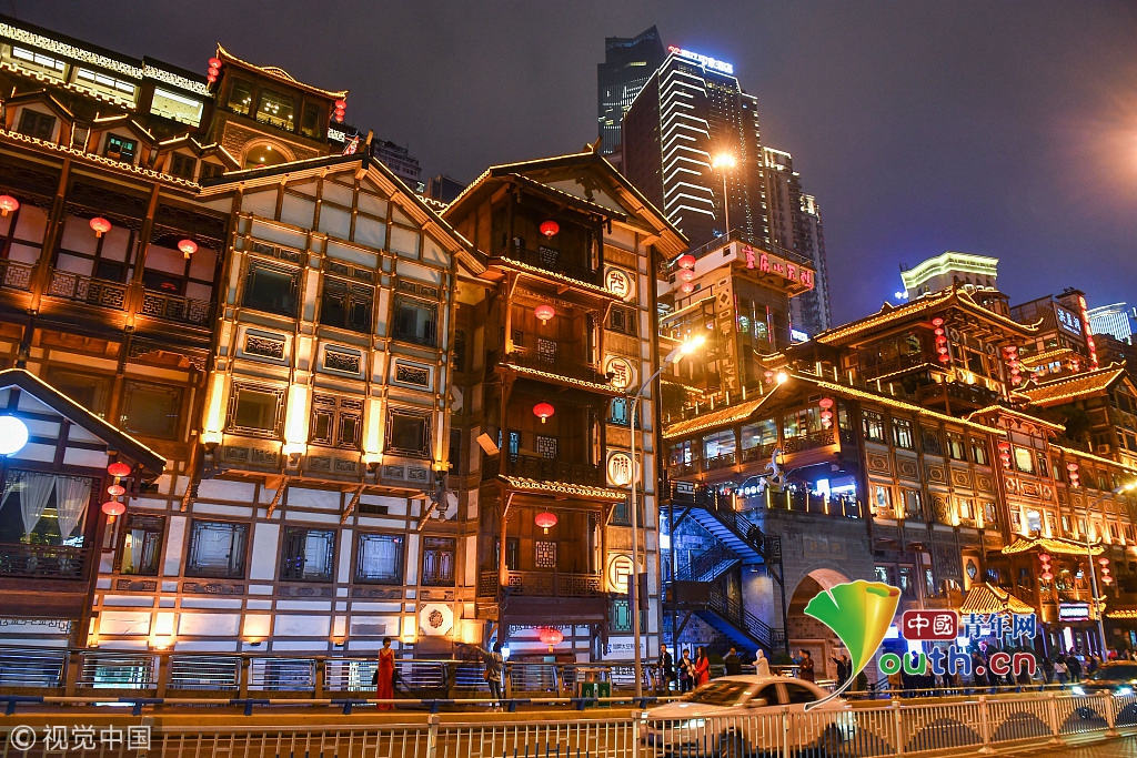 重庆网红景点游人如织 洪崖洞夜景辉煌