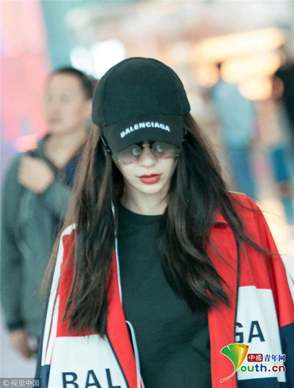 2018年10月11日,深圳,Angelababy现身深圳机场,头戴鸭舌帽的她露出半张小脸红唇娇艳,一身休闲装扮时尚靓丽,手中的大包与她纤瘦的身材形成鲜明对比,十分抢镜,在上身的宽大运动衣衬托下,套着紧身裤的双腿更显细长。