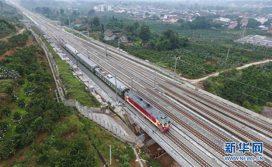 当日起,成雅铁路成朝段启动联调联试工作。成雅铁路成朝段于2013年8月开工建设,为双线客运专线,设计时速200公里。 新华社记者薛玉斌摄