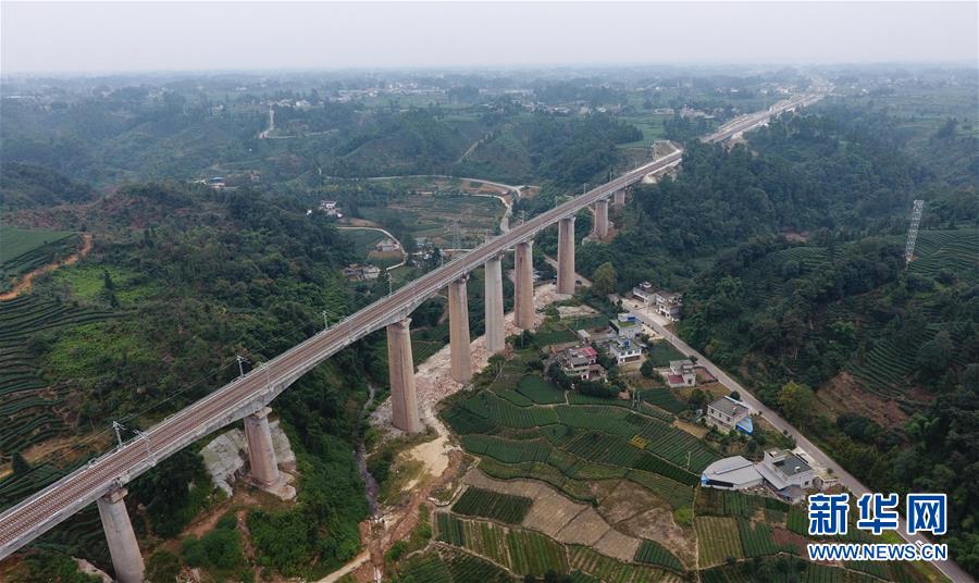 这是10月11日无人机拍摄的川藏铁路成雅段一座铁路桥。新华社记者薛玉斌摄