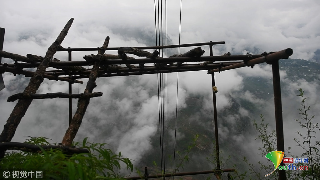 四川凉山悬崖村货运索道。上山一趟只要几十分钟。图片作者:莫晓