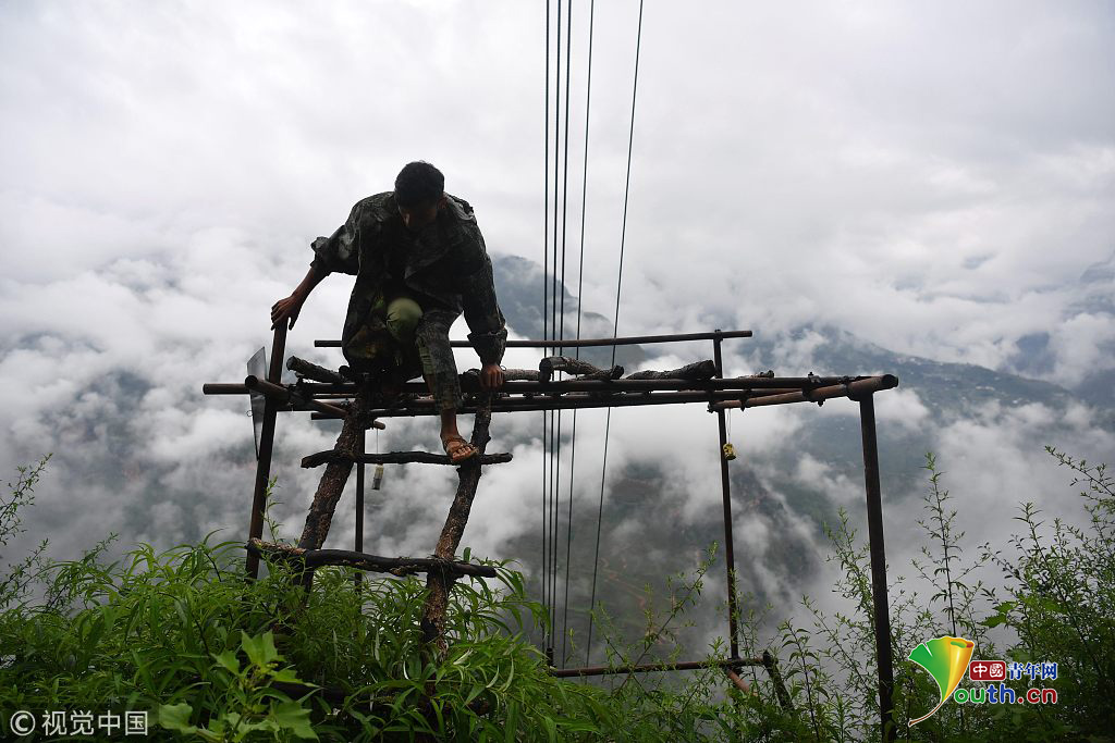 2018年8月3日,四川凉山悬崖村货运索道。上山一趟只要几十分钟。片作者:莫晓