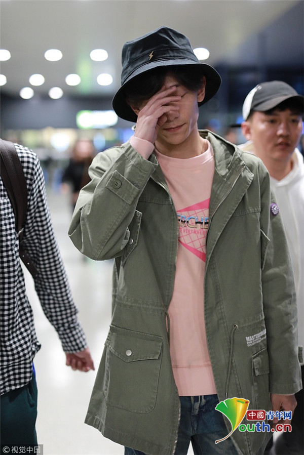 2018年10月14日,上海,张一山抵达上海机场。张一山戴渔夫帽眼袋严重瞬间老十岁, 用手挡脸似不愿上镜。