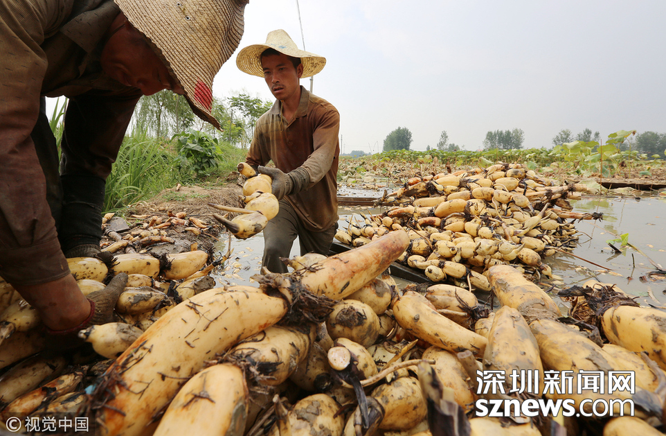深圳新闻网讯 日前,樊城区牛首镇浅水藕种植基地内一片繁忙,当地藕农利用晴好天气抓紧采收浅水藕,供应市场。近几年,牛首镇利用水资源优势,大力发展浅水藕种植,成为农民增收新渠道。